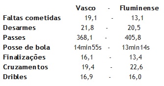 Confira abaixo os principais números de Vasco e Fluminense no Carioca (média):