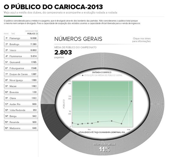 Vale lembrar que a estatística se refere apenas ao geral, desconsiderando as diferenças de mandante e visitante. Como dono da casa, o Vasco toma a vaga com ampla vantagem ao Botafogo (7.421 a 4.446 pessoas), que cai para quarto, fazendo o Tricolor (com 4.836) subir para terceiro. O Fla salta para 11.003, e o caçula Audax Rio assume o último lugar. A equipe de Dorival Júnior registra os dois maiores públicos (ambos em clássicos contra o Glorioso).