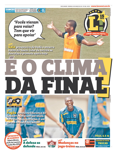 Imprensa destaca duelo entre Dedé e Seedorf; veja as capas