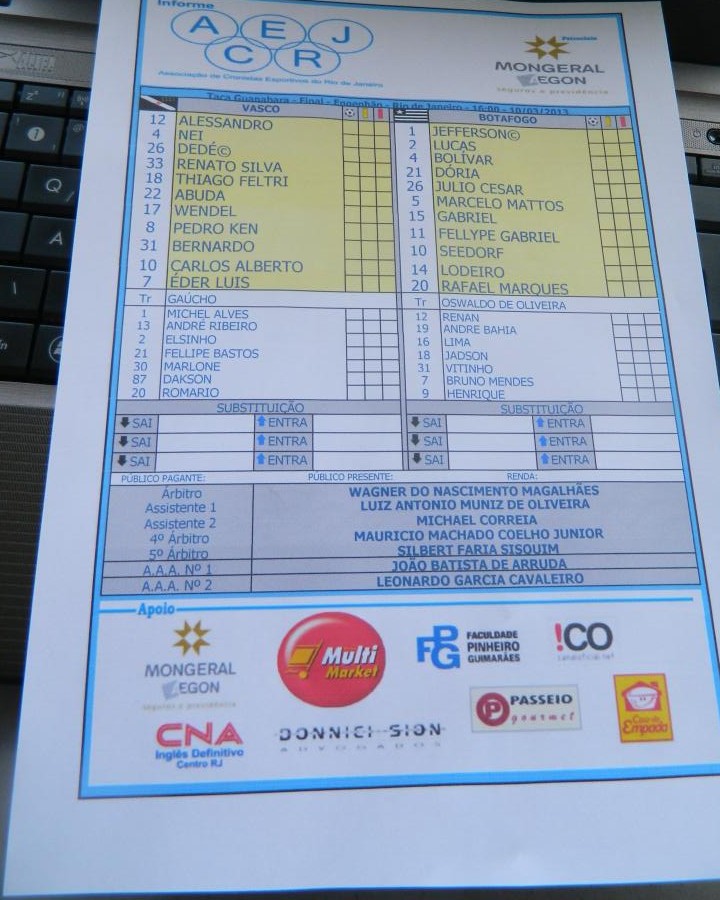 O técnico Gaúcho não tinha qualquer dúvida sobre a escalação do Vasco, que atua com Alessandro, Nei, Dedé, Renato Silva e Thiago Feltri; Abuda, Wendel, Pedro Ken e Carlos Alberto; Bernardo e Eder Luis. No banco, estão Michel Alves, André Ribeiro, Elsinho, Fellipe Bastos, Marlone, Dakson e Romário.