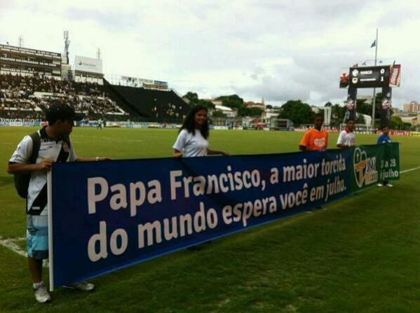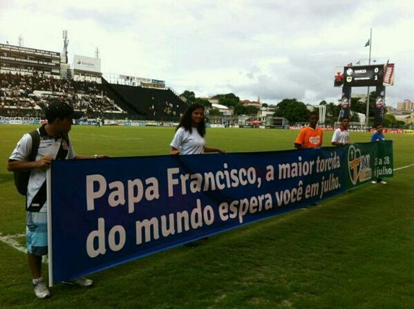 Antes de Vasco x Volta Redonda, jovens exibiram, no gramado de São Januário, uma faixa com uma mensagem para o Papa Francisco, que é aguardado para a Jornada Mundial da Juventude, que será realizada em julho no Rio de Janeiro.