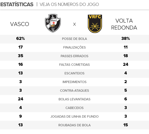 Contrariado com a derrota por 1 a 0 para o Volta Redonda na tarde desse domingo, em São Januário, o técnico Gaúcho disse que não tinha explicações para o mau resultado. Ao observar as estatísticas, no entanto, é fácil identificar que a baixa eficiência geral e o número de erros de passe decretaram a estreia com pé esquerdo na Taça Rio. Eder Luis falhou em quase um terço das tentativas (11 em 35) e liderou o quesito. Nos noventa minutos, foram 35 diante de apenas 18 do adversário.