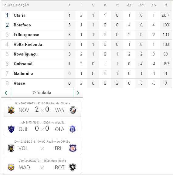 O empate do Quissamã contra o Olaria deixou o Vasco numa situação ainda mais incômoda na classificação do Grupo A da Taça Rio. De penúltimo colocado, o Gigante da Colina caiu para a última posição. As únicas possibilidades do Vasco não terminar a rodada na lanterna são: