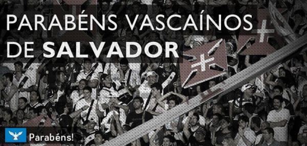 No Facebook, Vasco parabeniza torcedores de Salvador e Curitiba, cidades que aniversariam nesta 6ª