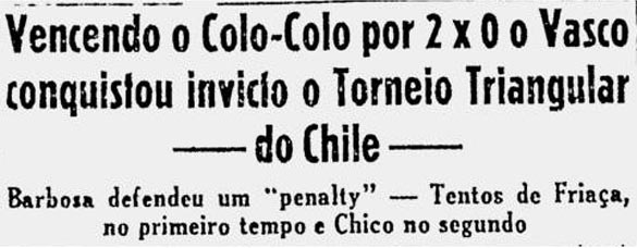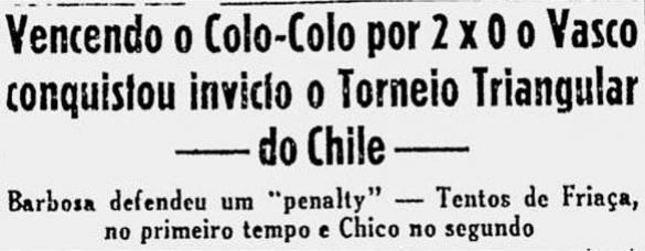 No dia 5 de abril de 1953, cinco anos após ter conquistado o Campeonato Sul-Americano de Clubes Campeões, no Chile, o Vasco voltou ao palco de sua primeira conquista para levantar mais uma taça, a do Torneio Internacional do Chile, seu segundo título Sul-americano da história, ao vencer o Colo Colo por 2 a 0, com gols de Friaça e Chico.