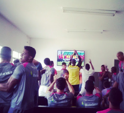 Concentrados para o jogo deste sábado (06/04) entre Vasco e Friburguense, válido pela quinta rodada da Taça Rio, os jogadores da equipe sub-20 do Vasco acompanharam juntos no Centro de Treinamento de Itaguaí a partida entre Vasco e Internacional pela Copa Rio sub-17.