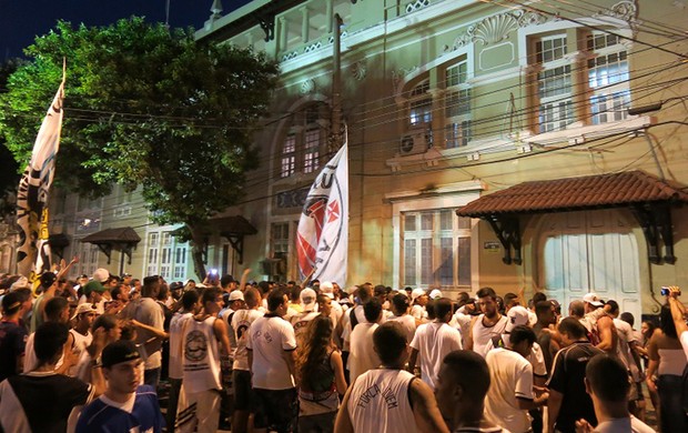 Depois, caminharam até a megaloja, perto de onde fica a sala do presidente vascaíno. Parados no local, começaram a xingar o mandatário. Em frente à social, no entanto, apenas apoiaram o clube. Apesar da manifestação, o clima foi pacífico, com fiscalização policial e sem confusão.
