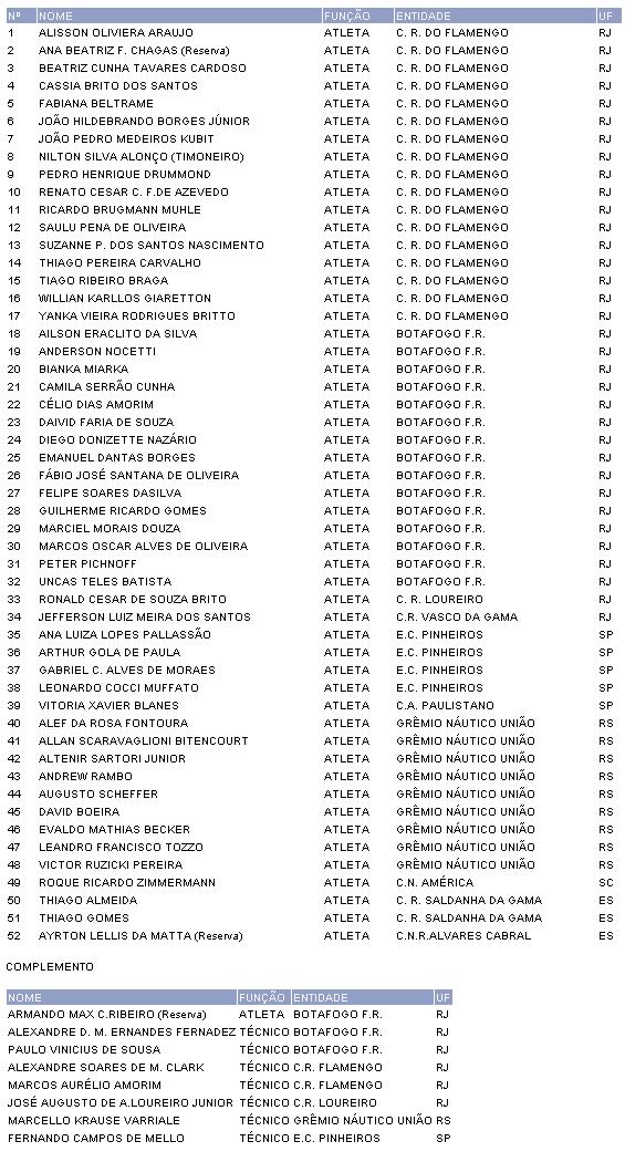 Divulgada a lista dos convocados para o Sul-americano. Confederação Brasileira de Remo - CBR divulgou a lista dos convocados para o Sul-americano.