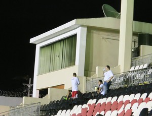 Com as arquibancadas praticamente vazias, sobrou espaço para faixas e mensagens de protesto contra a diretoria e até para a oposição do Vasco. Uma delas dizia que "enquanto situação e oposição brigam, o Vasco sofre".