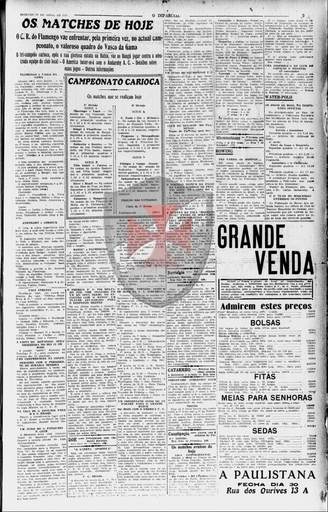 O próximo confronto seria contra o Flamengo no campo do adversário na rua Paissandu, e mesmo saindo atrás do marcador aquela equipe já possuía a alma de time da virada conforme seria conhecido o nosso Vasco anos depois, e com galhardia, transformou o resultado na etapa final através de dois gols de Cecy e um de Negrito, decretando assim o placar de 3x1.