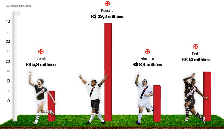 Em valores corrigidos, Romário foi a maior venda de ídolo da história do Vasco, seguido por Dedé