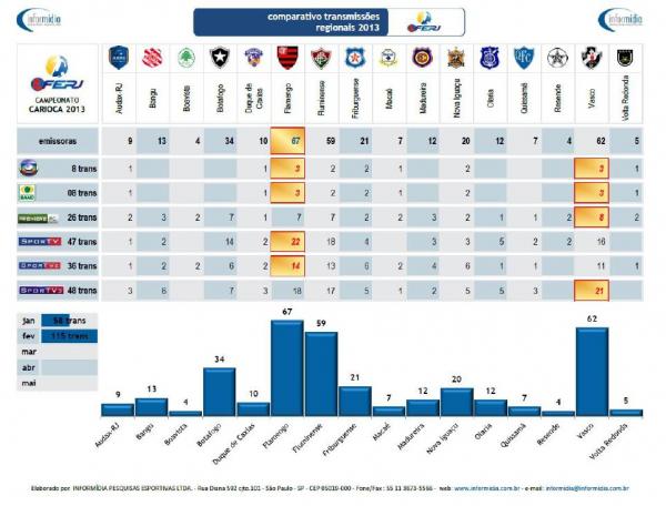 Um abismo separa as 59 transmissões do Fluminense das 34 do Botafogo. Enquanto os tricolores apareceram quatro vezes em TV aberta, o Glorioso não apareceu nenhuma – situação modificada das semifinais da Taça Guanabara em diante. Neste sentido, o clube de General Severiano ficou atrás de pequenos como Friburguense e Nova Iguaçu (quatro partidas em TV aberta), Audax, Macaé e Volta Redonda (duas).