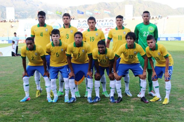 Em um primeiro tempo equilibrado (foram seis conclusões para cada lado), o Brasil atacou menos do que gostaria, mas com maior perigo do que o rival. Robert, mais uma vez, foi o condutor ao ataque. Aos 14 minutos, o meia do Fluminense deu chapéu no marcador e arriscou de primeira, sem deixar a bola cair. Passou perto. Antes, aos quatro minutos, Kenedy bateu cruzado, rente à trave.