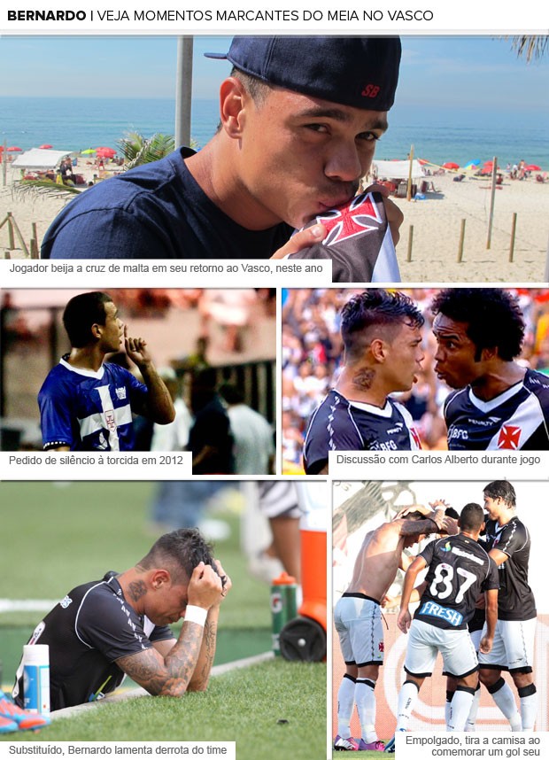 Bernardo iniciou a atual temporada disposto a finalmente se firmar como titular do Vasco, dono de 50% de seus direitos (o Cruzeiro tem 37,5%, e a empresa de Léo Rabello, 12,5%). Durante os 15 dias de reclusão em Pinheiral (RJ), ele foi um dos destaques nos treinamentos de um time enfraquecido após a saída de alguns dos principais jogadores do elenco. E iniciou o Campeonato Carioca absoluto na equipe montada por Gaúcho, disparando como artilheiro. Mas a frequência na noite carioca acabou por cobrar seu preço dentro de campo.