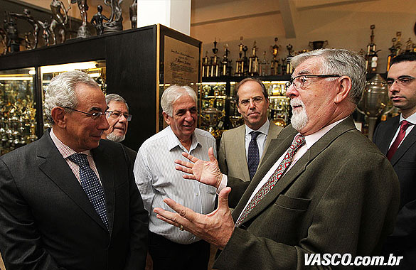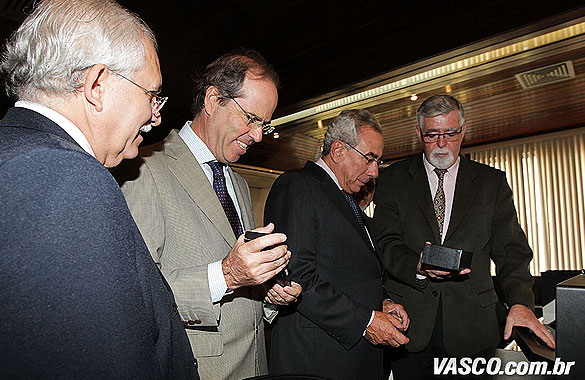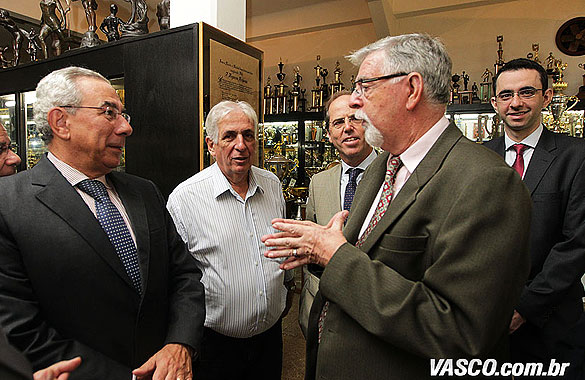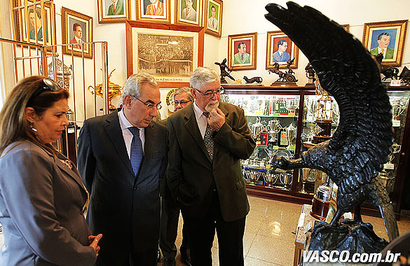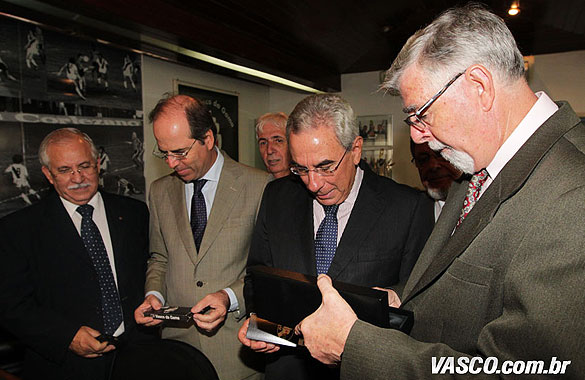 Após o tour no caldeirão, os diplomatas receberam alguns presentes do Vasco, na sala da presidência.