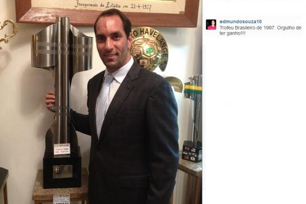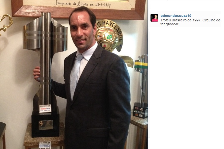 Em São Januário, Edmundo tira foto com troféu do Brasileiro de 1997: 'Orgulho de ter ganho'