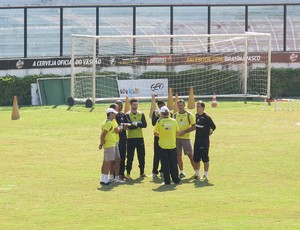 Ainda sem um titular definido para o gol do Vasco, o técnico Paulo Autuori reuniu os goleiros e preparadores durante o treinamento na manhã deste sábado em São Januário. Por mais de 10 minutos, o treinador conversou e ouviu os jogadores da posição. O encontro aconteceu na semana das declarações que causaram desconforto do ex-goleiro Carlos Germano. O preparador de goleiro se queixou de não ter sido consultado sobre a contratação de Julio Cesar, do Corinthians, que acabou não vingando.
