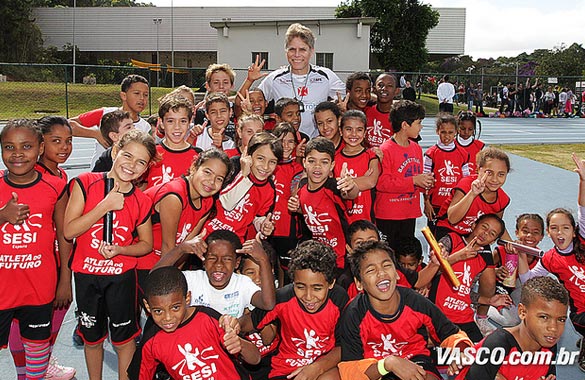 O Vasco teve companhia mirim no treinamento da manhã desta quarta-feira (08/05), na Universidade Federal do Rio de Janeiro. Cerca de 30 crianças do SESI - Atletas do futuro do bairro da Barreira do Triunfo, em Juiz de Fora, utilizaram uma parte do campo para praticar atividades físicas, antes do início do treino do elenco vascaíno.