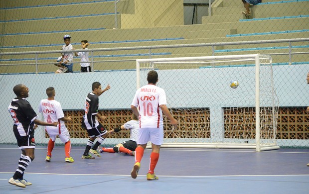 Precisando da vitória para confirmar a classificação antecipada na semifinal, o Vasco/Tamoyo começou atacando o adversário. E teve boa chance com Tomás, mas Eric salvou em cima da linha. Buscando incessantemente o gol, a equipe abriu o placar em um lance de muita esperteza do ala Rafinha. O goleiro Luis Eduardo, do América, saiu jogando e deu passe errado no meio. A bola foi em direção de Rafinha, que sem dominar, chutou da sua quadra e marcou um belo gol.