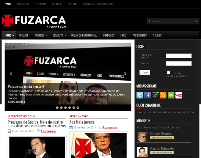 Há um novo site sobre o Vasco no ar. É o Fuzarca.