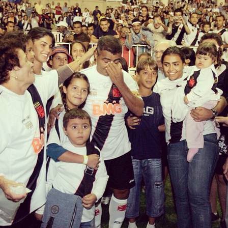 Nota da NETVASCO: A foto, na verdade, é de 20/05/2007, dia do milésimo gol de Romário, que completa 6 anos nesta 2ª-feira. Romário não chegou a ter uma despedida oficial no Vasco. A esposa do Baixinho, na época, era Isabella Bittencourt, que é quem aparece na foto, e não Danielle Favatto, mãe de Danielinha.