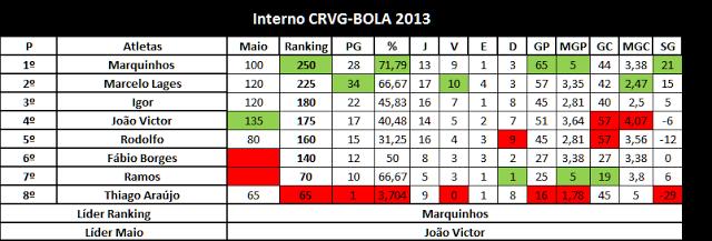 Confira agora como esta a classificação do mês de Maio e a classificação geral do Interno