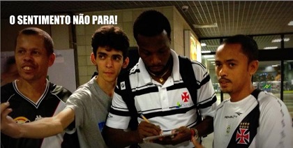 O quarteto esperava desde às 22h o desembarque do Vasco. Um dos torcedores, Valnei Santiago, segurava cartazes com imagens de Romário, do time que venceu o troféu Ramon de Carranza em 1989, além da foto do ex-presidente Eurico Miranda, de quem é fã.