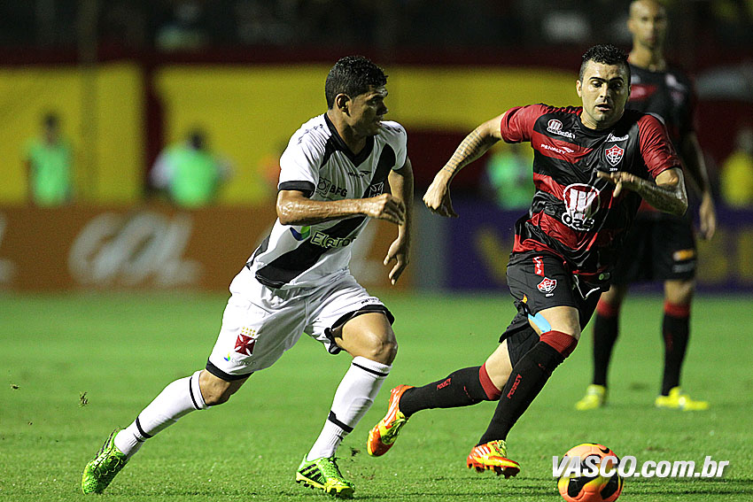 O Vitória adiantou sua marcação e o Vasco tinha muita dificuldade em sair jogando. O Rubro-Negro baiano continuava insistindo nas jogadas pelas laterais do campo, principalmente pelo lado esquerdo. Aos 31, após belo lançamento do zagueiro Gabriel Paulista, Escudero recebeu, nas costas do lateral Elsinho, avançou pela esquerda até a entrada da área e cruzou para Dinei abrir o placar da partida e colocar o time da casa na frente do placar.