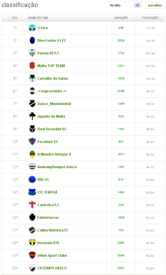 Cartola FC: Confira a classificação da Liga NETVASCO OFICIAL