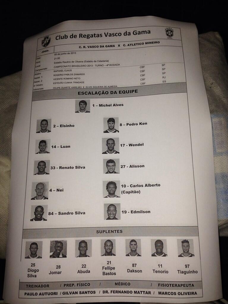 Confira escalação do Vasco; Carlos Alberto é capitão e Tenorio fica no banco