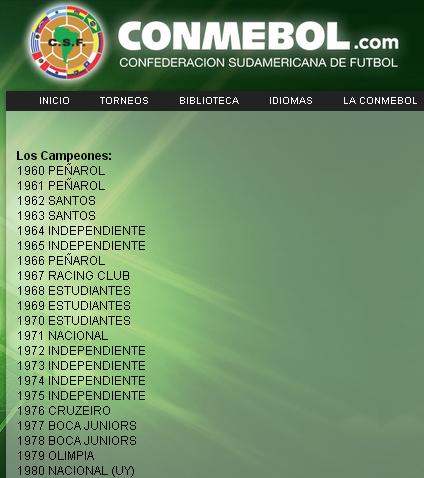 Entretanto, a entidade máxima do futebol sul-americano não incluiu, em seu site, o título do Vasco em 1948 na galeria dos campeões da Copa Libertadores da América: