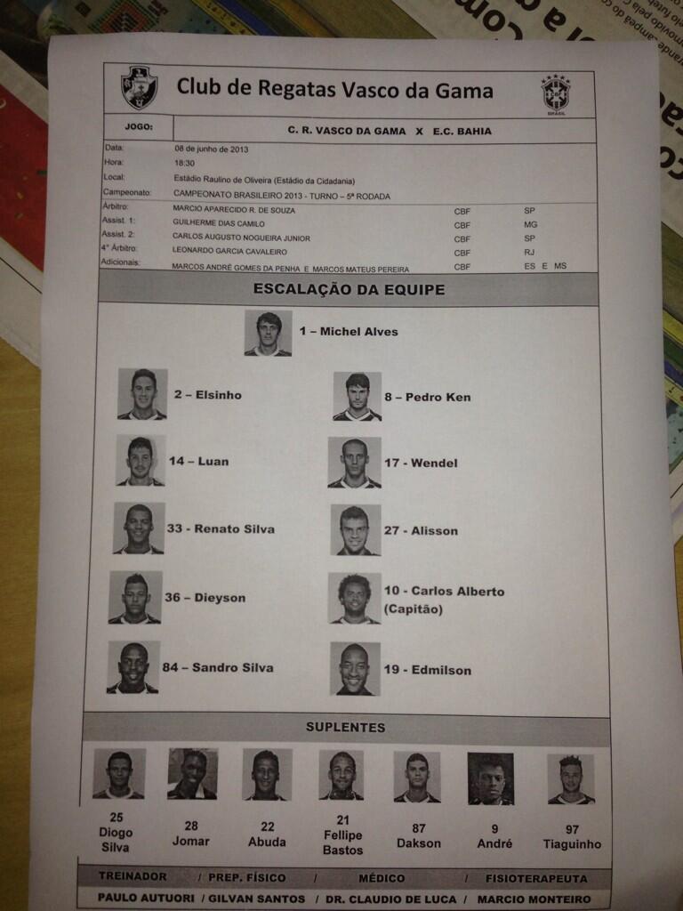 Fonte: Twitter da assessora de imprensa do Vasco Patrícia Gregório