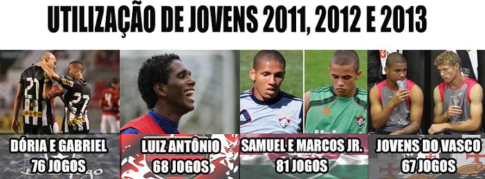 Os nove promovidos totalizam juntos 67 partidas disputadas, número que é inferior a soma de jogos de duas promessas do Botafogo. O zagueiro Dória e o volante Gabriel, lançados nos mesmo período, possuem juntos 76 jogos pelo alvinegro. Os jovens Marcos Júnior e Samuel, lançados pelo Fluminense em 2012, somam juntos 81 partidas no profissional. Luiz Antônio, do Flamengo, subiu em 2011 e já disputou 68 partidas pelo time de cima.