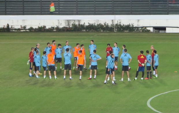 Os reservas saíram de campo depois de uma hora e quinze de atividade. A seleção da Espanha chegou no Rio na manhã desta segunda-feira e enfrenta o Taiti no Maracanã, na quinta-feira, às 16h, pela fase de grupos da Copa das Confederações.