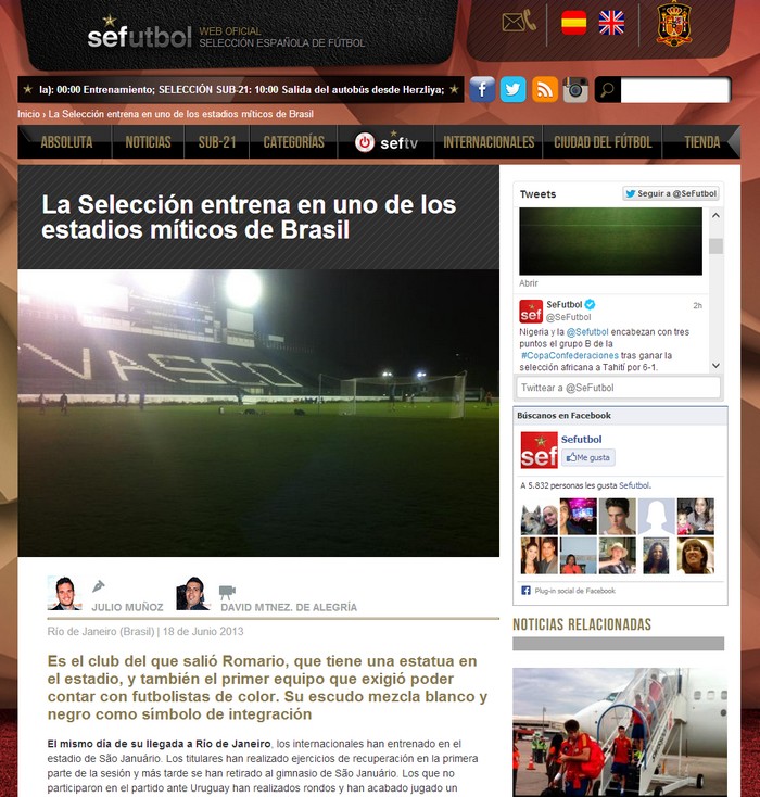 El mismo día de su llegada a Río de Janeiro, los internacionales han entrenado en el estadio de São Januário. Los titulares han realizado ejercicios de recuperación en la primera parte de la sesión y más tarde se han retirado al gimnasio de São Januário. Los que no participaron en el partido ante Uruguay han realizados rondos y han acabado jugado un partidillo a medio campo.