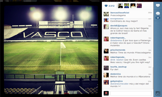 Através de sua página na rede social Instagram, o camisa 1 postou uma imagem da arquibancada do estádio e escreveu '#vascodagama', o que rendeu comentários de vascaínos e mais de 3,5 mil fãs na foto.