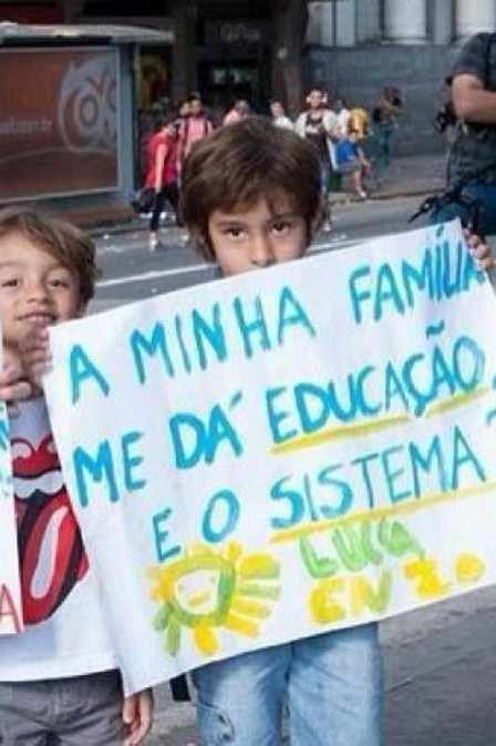 Enzo e Lucca participaram de uma manifestação ao lado da mãe, Laila Fonseca, em Belo Horizonte. A jovem também publicou uma foto no Facebook.