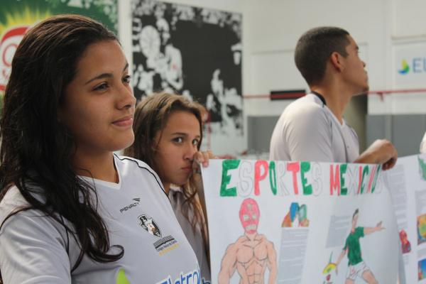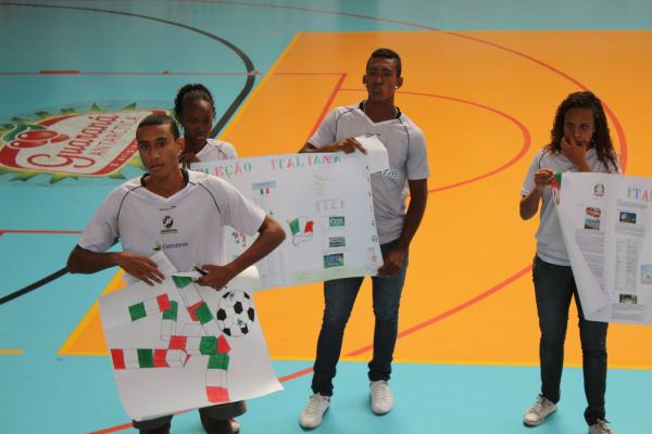 Ainda faltam alguns dias para a final da Copa das Confederações, mas no Colégio Vasco da Gama, os alunos já conquistaram o título. Isso porque na manhã desta quinta-feira (27/06), no ginásio do forninho, em São Januário, os estudantes do ensino médio participaram do “De olho na Copa das Confederações”, projeto onde os adolescentes, divididos em oito grupos, cada um representando uma seleção participante da primeira fase da competição, tiveram que apresentar curiosidades, culturas e expor os conhecimentos pesquisados sobre cada nação.