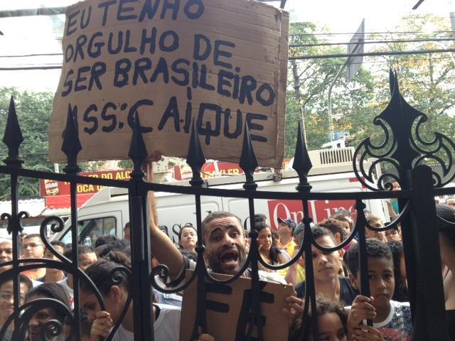 Cerca de 50 pessoas estão na porta de São Januário e pedem a abertura dos port~es para acompanhar o treino. Aos gritos de "Ão, ão, ão, libera Felipão!",