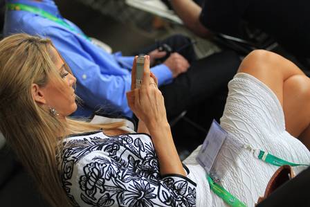 Aos 35 anos, Inéz está no Brasil cobrindo o campeonato pela TV Azteca, do México. Mãe de quatro filhos, sendo dois gêmeos, a mexicana desperta a atenção nos treinos e jogos da seleção brasileira. Desta vez, ela aproveitou um intervalo do treino para trocar mensagens pelo celular.