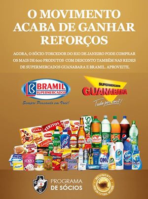 Sócio-torcedor vascaíno do Rio passará a ter descontos nas redes de supermercados Bramil e Guanabara