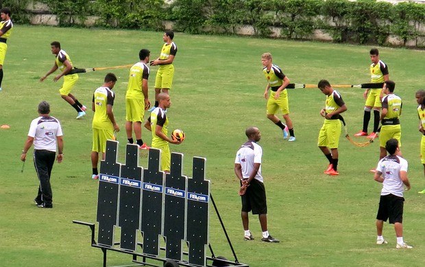 De volta a São Januário depois de um mês, os jogadores do Vasco encontraram algumas novidades no campo vascaíno. Com novas balizas, barreiras móveis e ainda a nova demarcação do campo, o grupo se reapresentou depois da polêmica atividade cancelada no último sábado no Cefan. Na ocasião, o elenco decidiu não treinar porque para até seis jogadores houve problemas no recebimento do salário. O clube alegou responsabilidade da portabilidade de banco como motivo para o inconveniente.