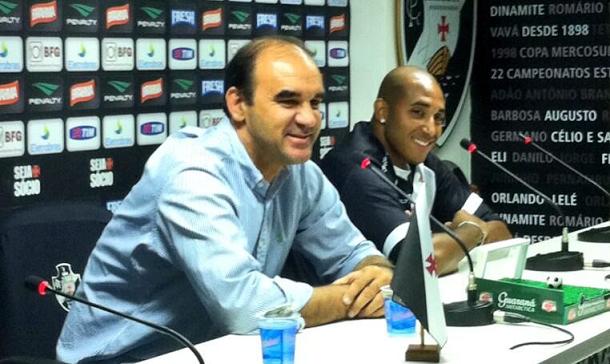 @RogerFerreira74: Atacante Reginaldo sendo apresentado neste momento pelo diretor Ricardo Gomes em São Januário. #FDassessoria