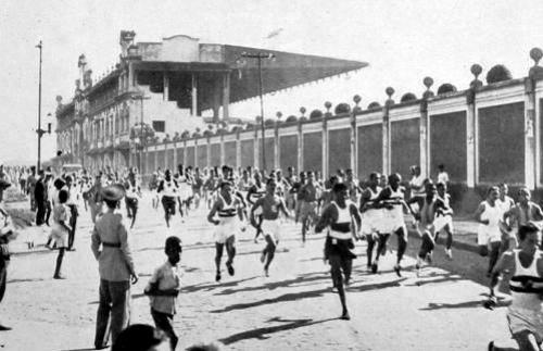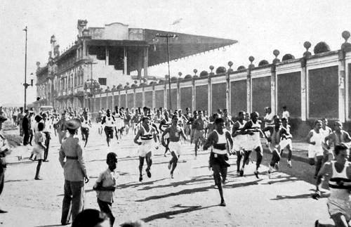 Corrida de rua em frente ao Estádio de São Januário. Foto da década de 1940.