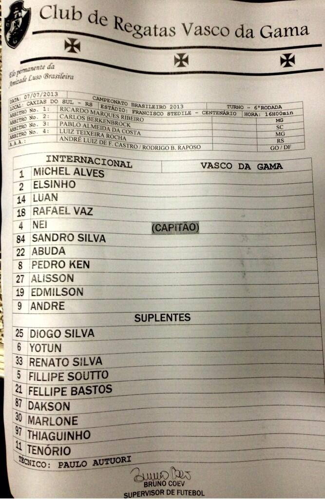 Fonte: Twitter do assessor de imprensa do Vasco Vinicius Gonçalves