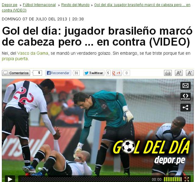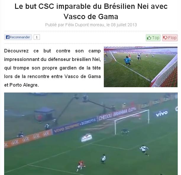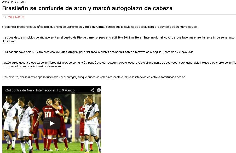 Gol contra de Nei no jogo diante do Internacional repercute no exterior