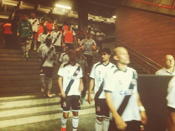 Veja foto do time do Vasco entrando em campo com uniforme com logo da Caixa