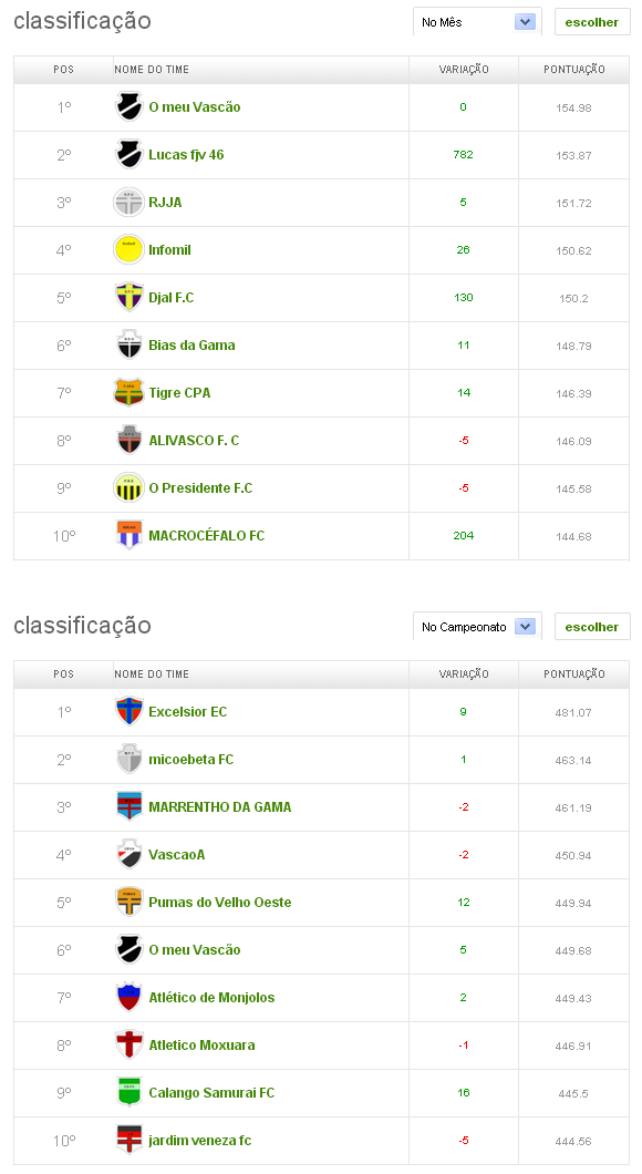 • 20/05/13NETVASCO lança liga no jogo Cartola FC; participe!