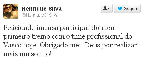 No Twitter, Henrique comemora 1º treino entre os titulares: 'Felicidade imensa'