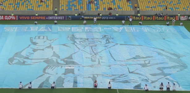 Bandeirão dá as boas-vindas ao Papa Francisco antes de Fluminense x Vasco